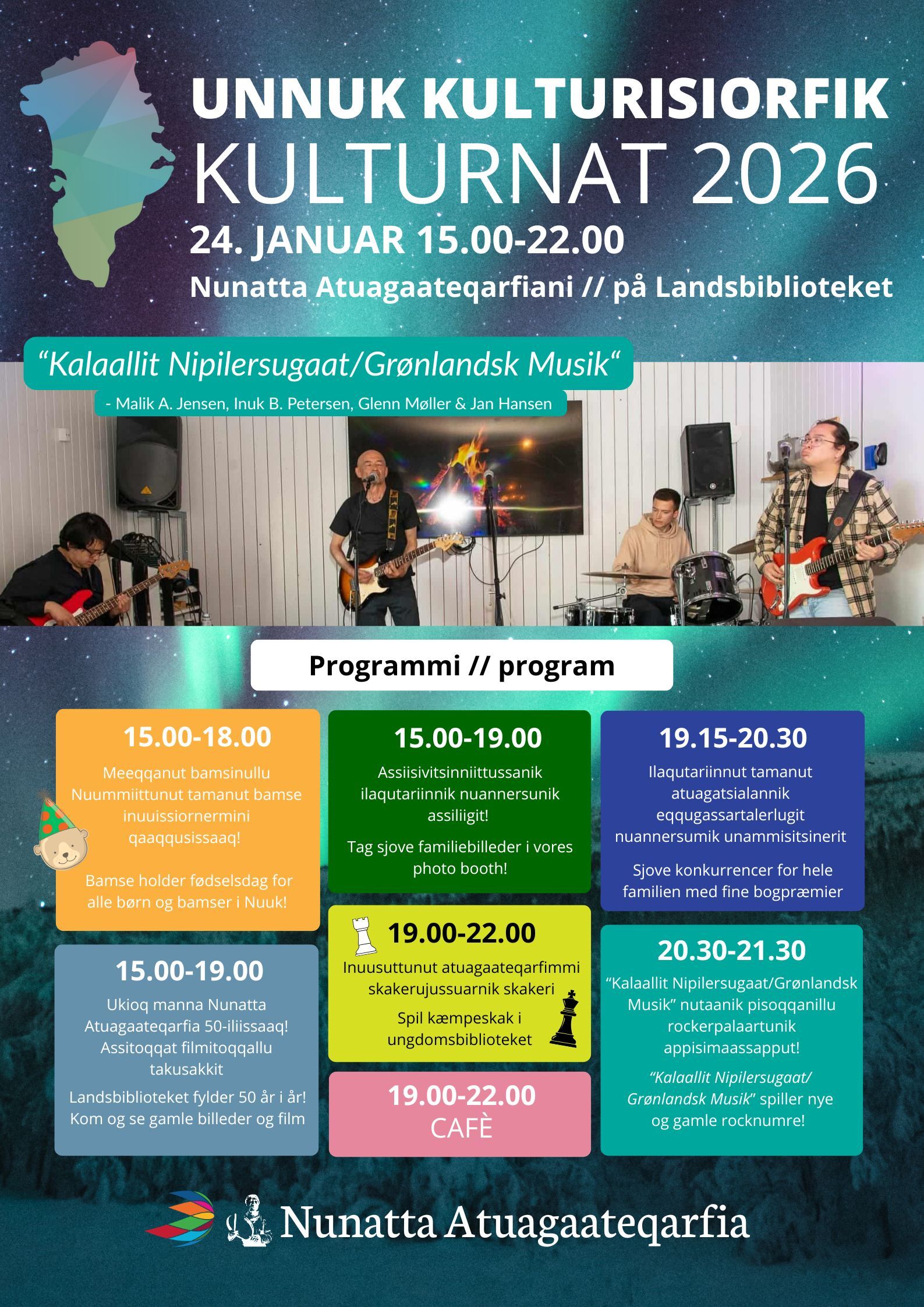 20.30-21.30: “Kalaallit Nipilersugaat/Grønlandsk Musik” spiller nye og gamle rocknumre!